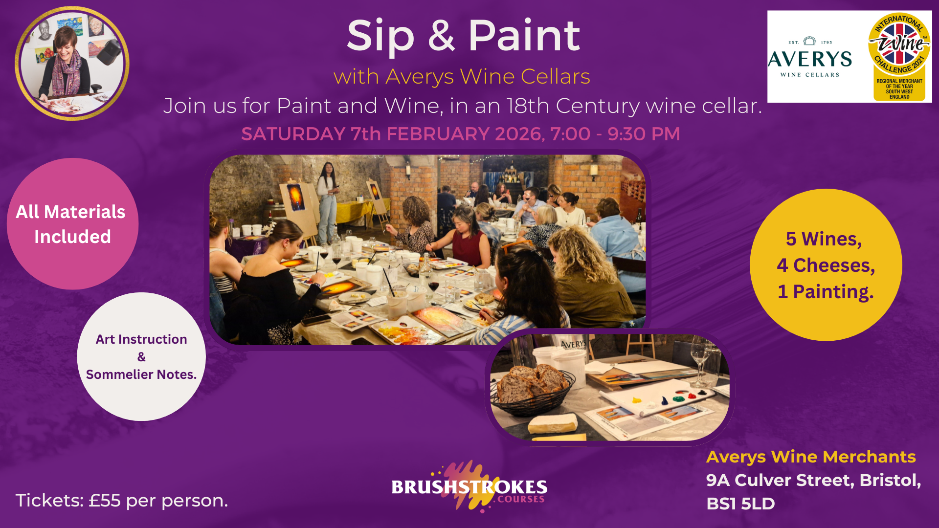 Join myself and Averys Wine Merchants for a delightful Paint and Wine evening in an atmospheric 18th Century wine cellar underneath the streets of Bristol.
