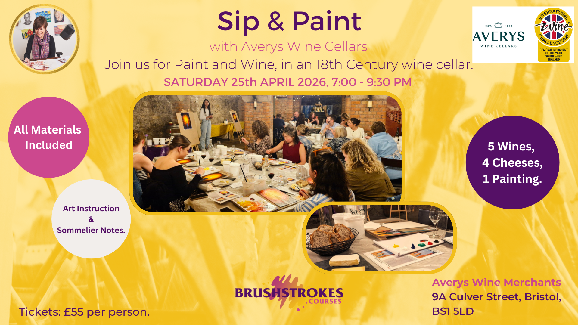 Join myself and Averys Wine Merchants for a delightful Paint and Wine evening in an atmospheric 18th Century wine cellar underneath the streets of Bristol.